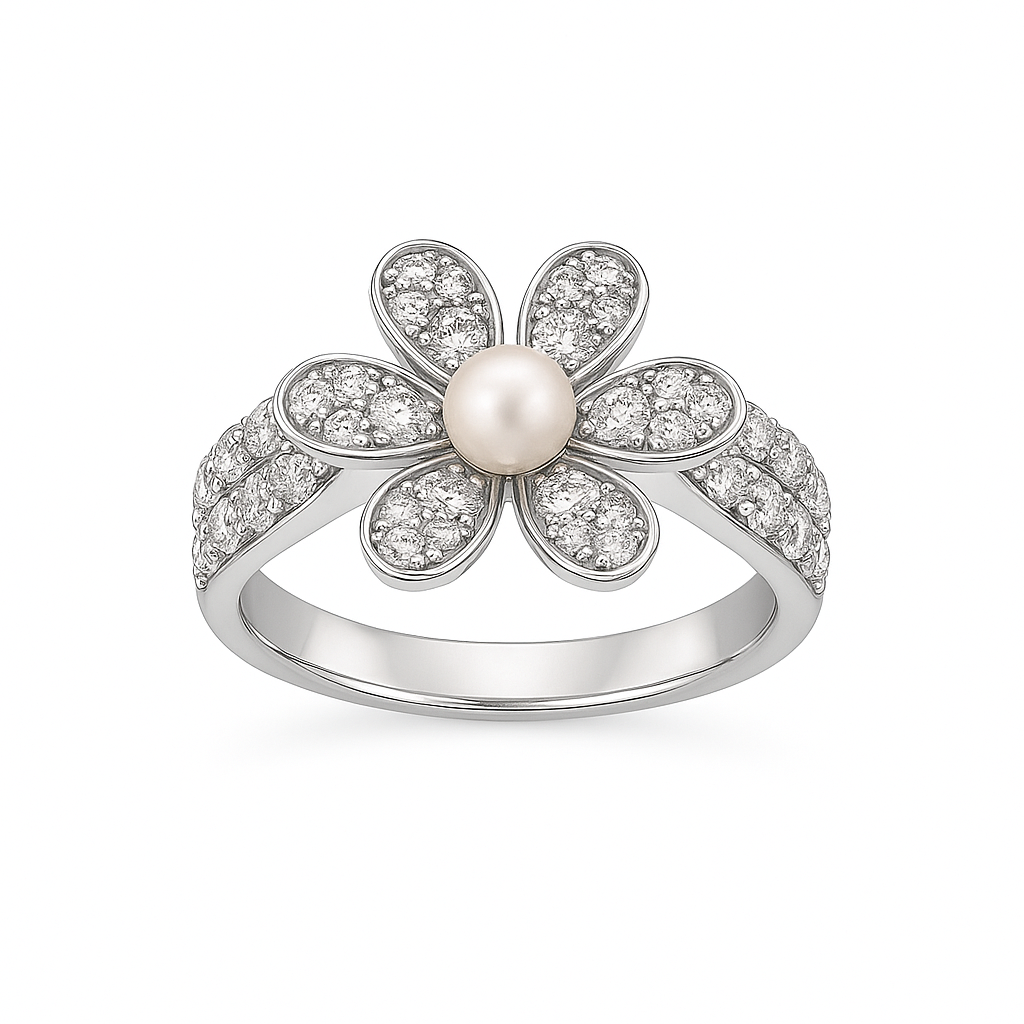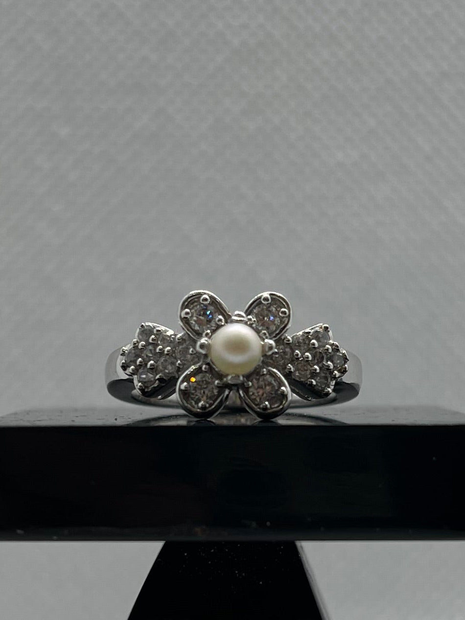 925 Silver Flower Ring with Pearl Center & Zircon Accents – Time N Treasure