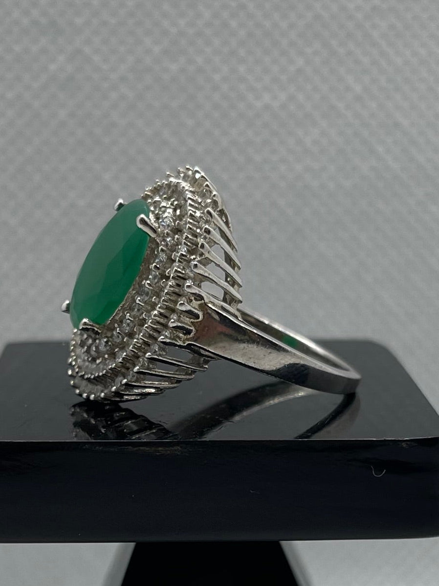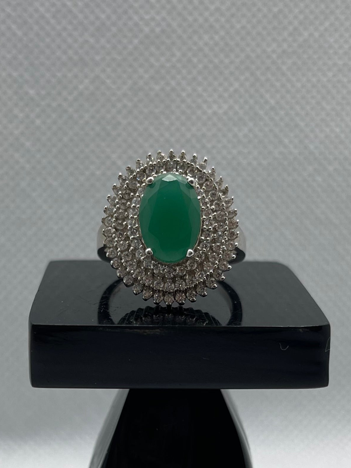 925 Silver Ring with Big Oval Green Stone & Zircon Border – Time N Treasure