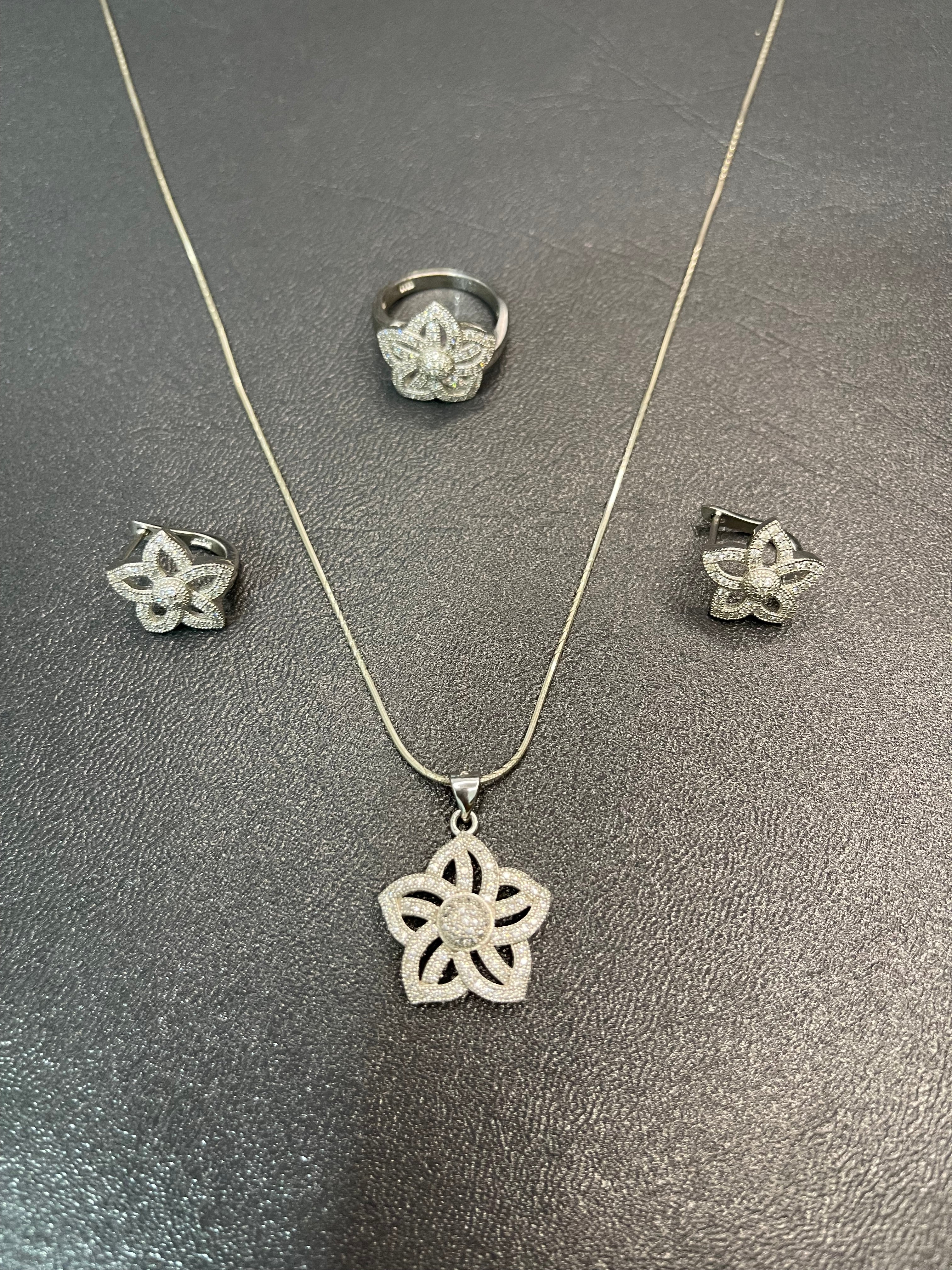 Shine bright with this dazzling 925 sterling silver locket set, featuring a unique star-shaped design accented with sparkling zircon stones. Paired with a matching silver ring, this handcrafted set from Time N Treasure captures the magic of celestial beauty and timeless elegance.