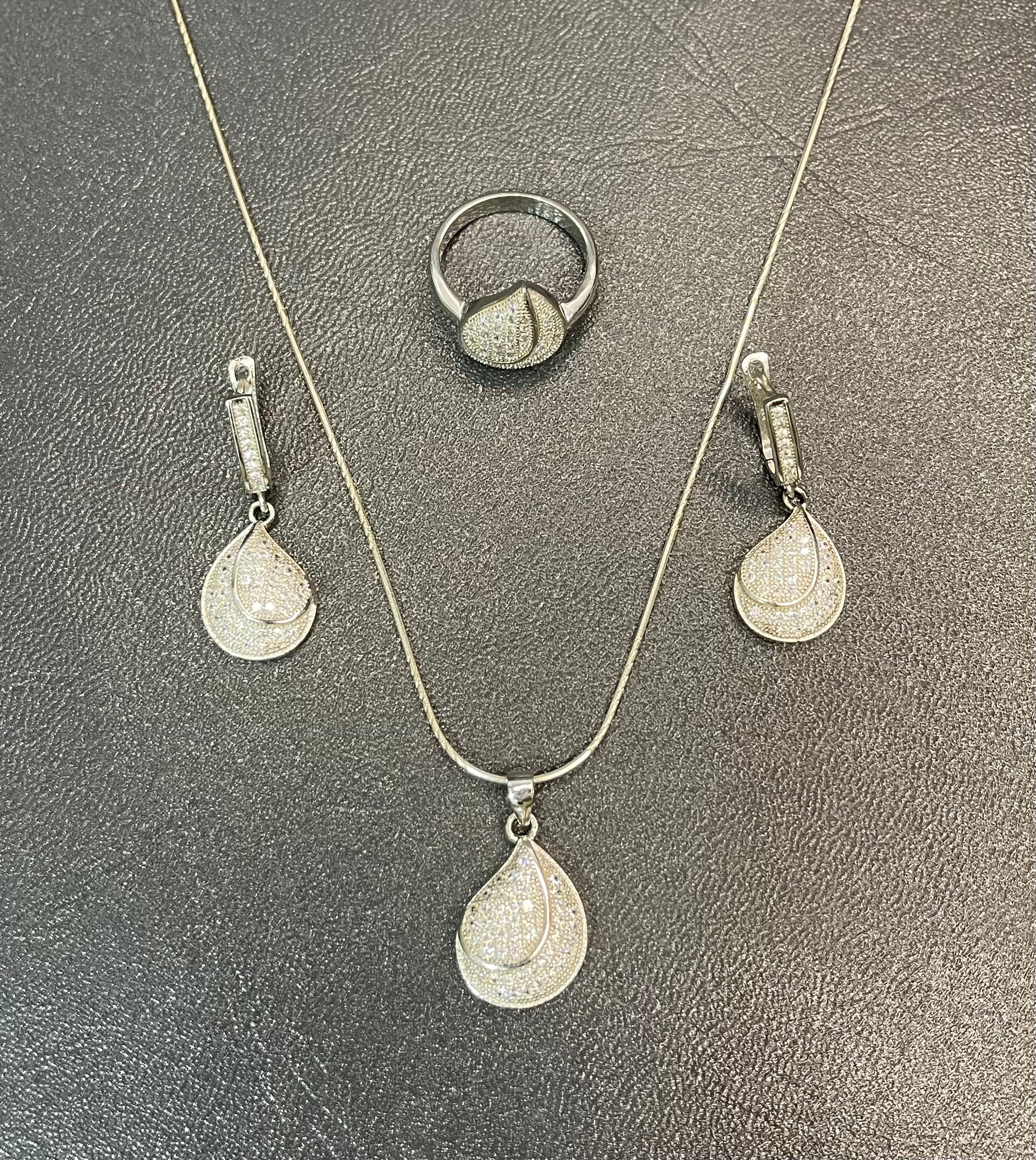 The teardrop-shaped locket adds a touch of grace to your neckline, while the matching ring completes the look with refined sparkle — perfect for formal wear or thoughtful gifting.