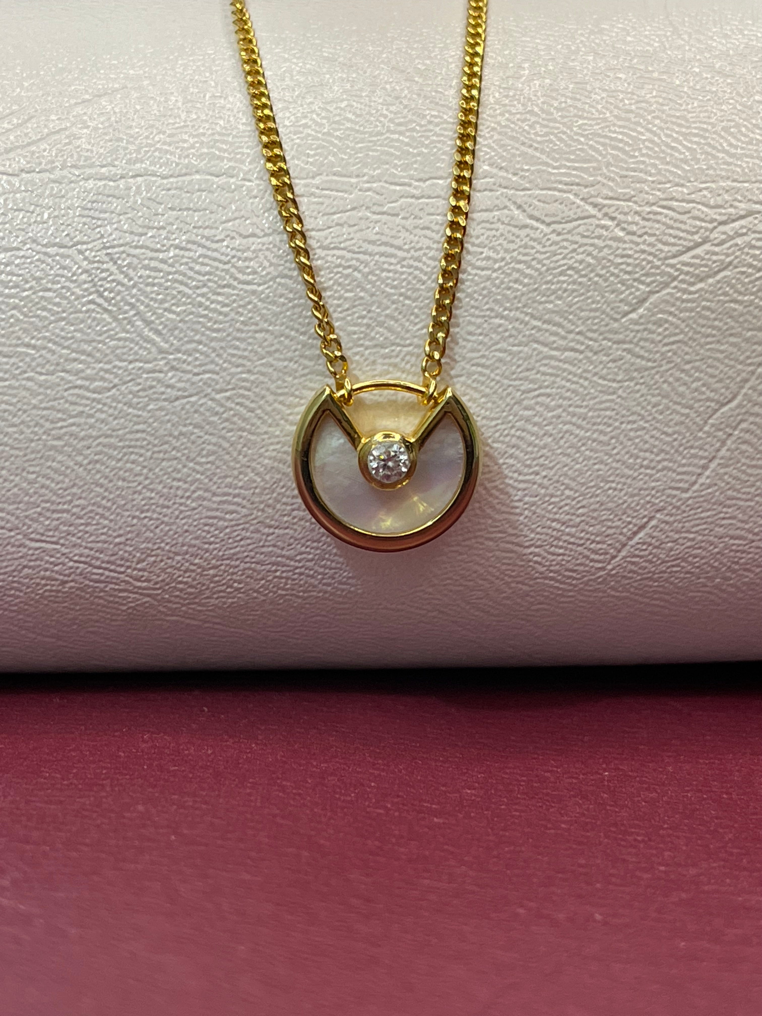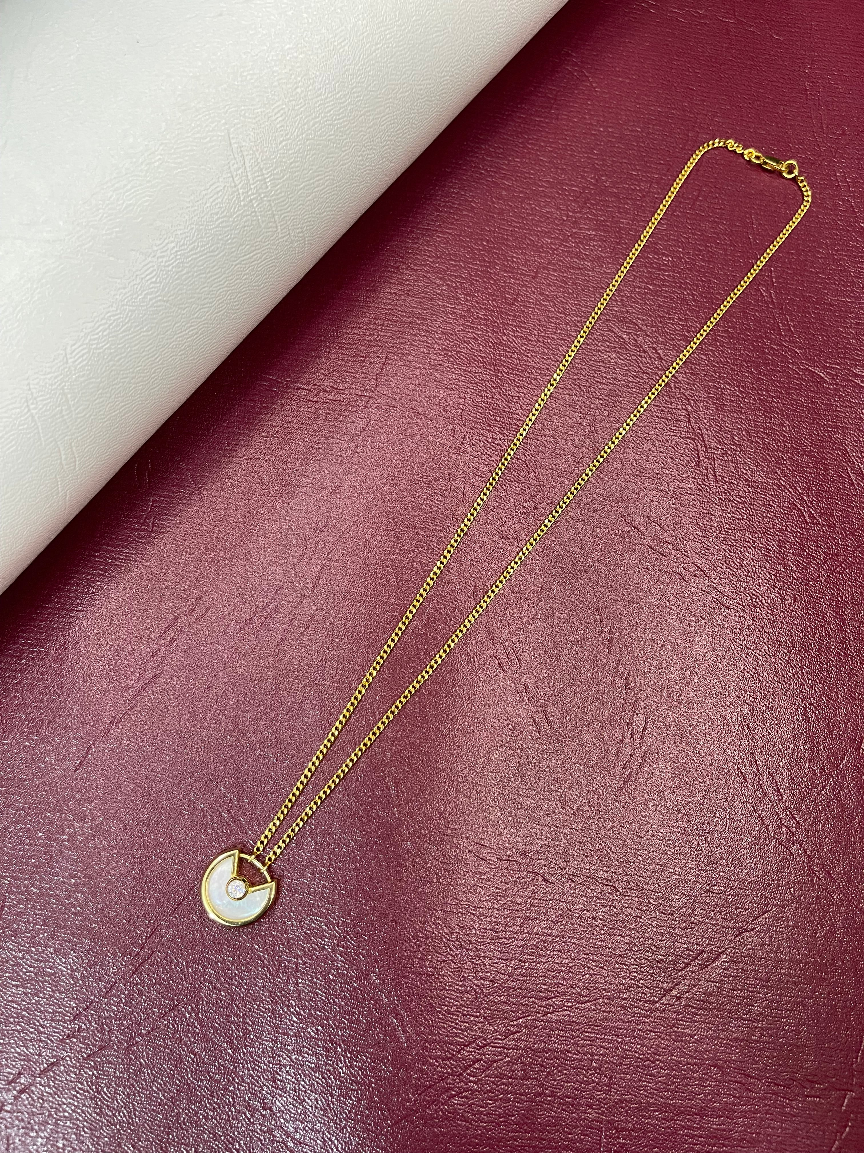 Embrace elegance and charm with this Amulette de Cartier Inspired Locket Chain, exquisitely crafted in 925 sterling silver with a radiant gold plated finish. The circular pendant design symbolizes luck, love, and protection — blending timeless beauty with modern sophistication. Perfect for both casual and formal wear, this locket chain adds a luxurious touch to any outfit.
