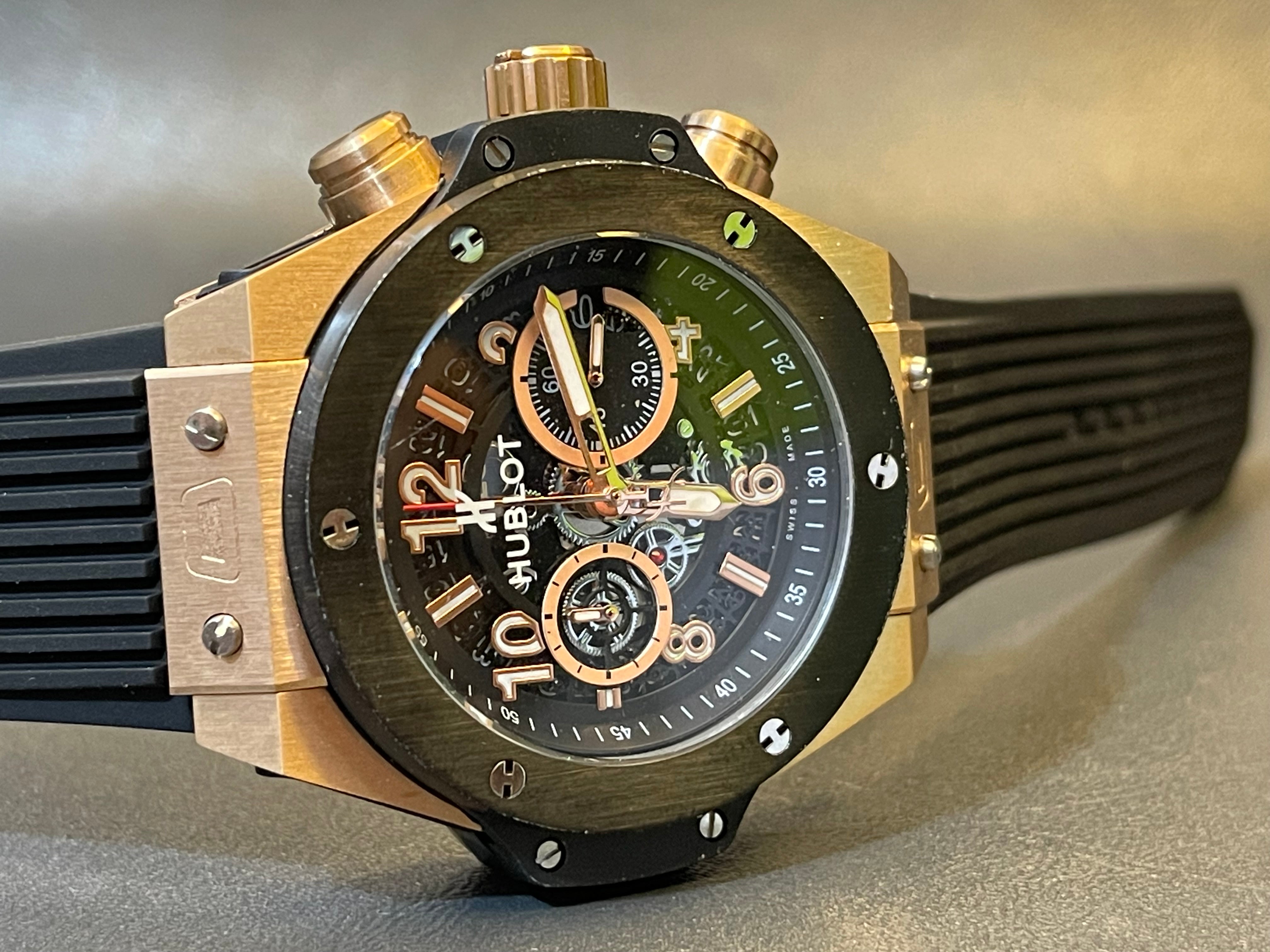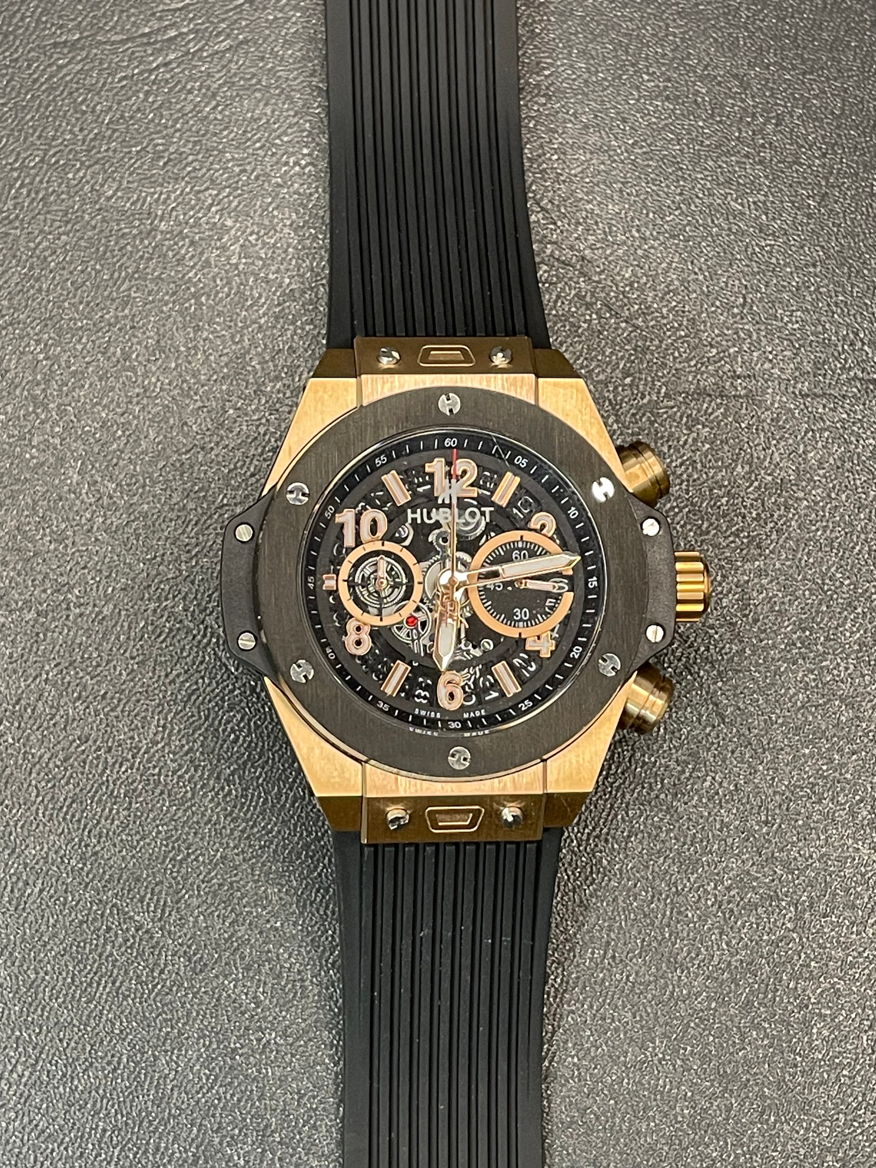 Elevate your style with this Chronograph Quartz Watch, crafted in a striking black ceramic and rose gold case. Featuring a precise quartz movement, bold black dial with chronograph functions, and a durable silicon strap, this timepiece is designed for modern men who demand both performance and elegance. The combination of ceramic durability and rose gold luxury makes it the perfect watch for any occasion.