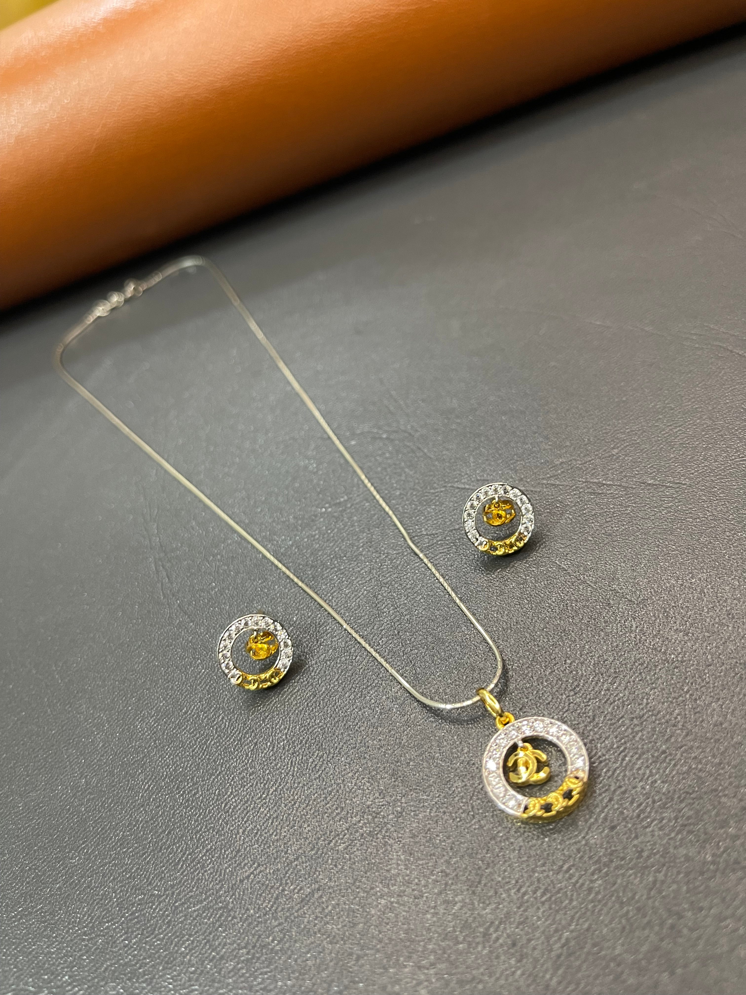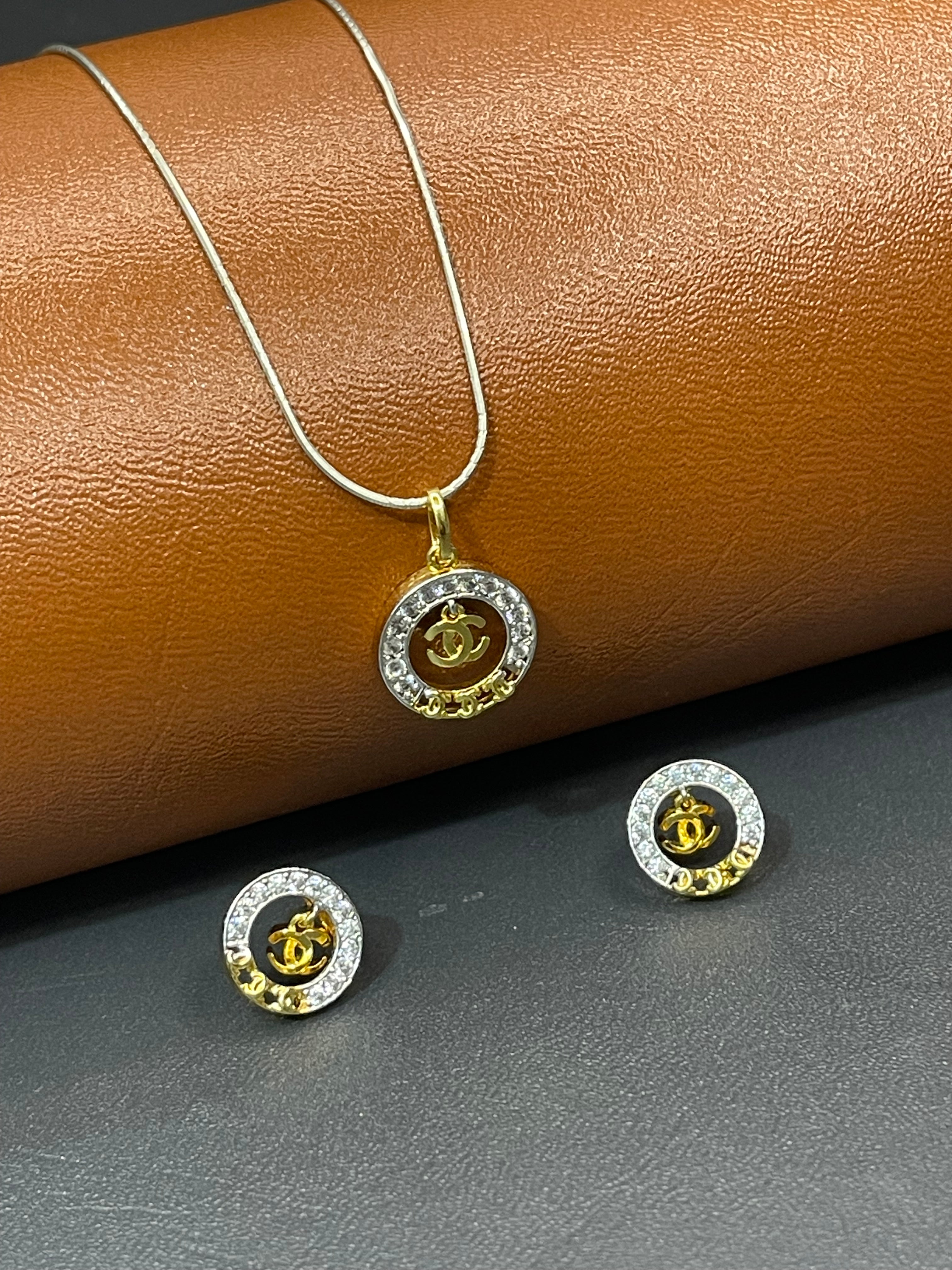 Elevate your style with this Chanel-inspired CC Locket Tops Set, featuring a circular two-tone design crafted in premium 925 sterling silver. The elegant mix of silver and gold tones adds a luxurious touch, making it perfect for both everyday wear and special occasions. Each piece reflects the refined craftsmanship of Time N Treasure, combining modern elegance with timeless charm.