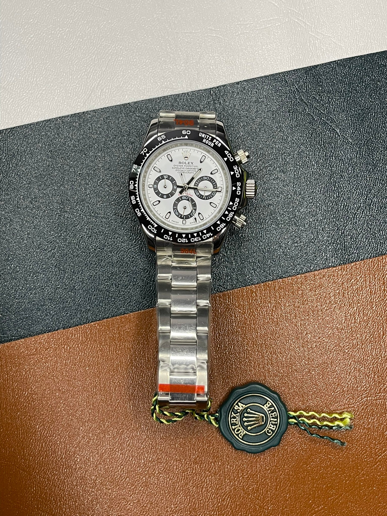 The iconic Daytona Panda inspired watch is a timeless symbol of racing heritage and luxury style. Featuring a crisp white dial contrasted with bold black chronograph subdials, this watch delivers the instantly recognizable “Panda” look loved by collectors worldwide.