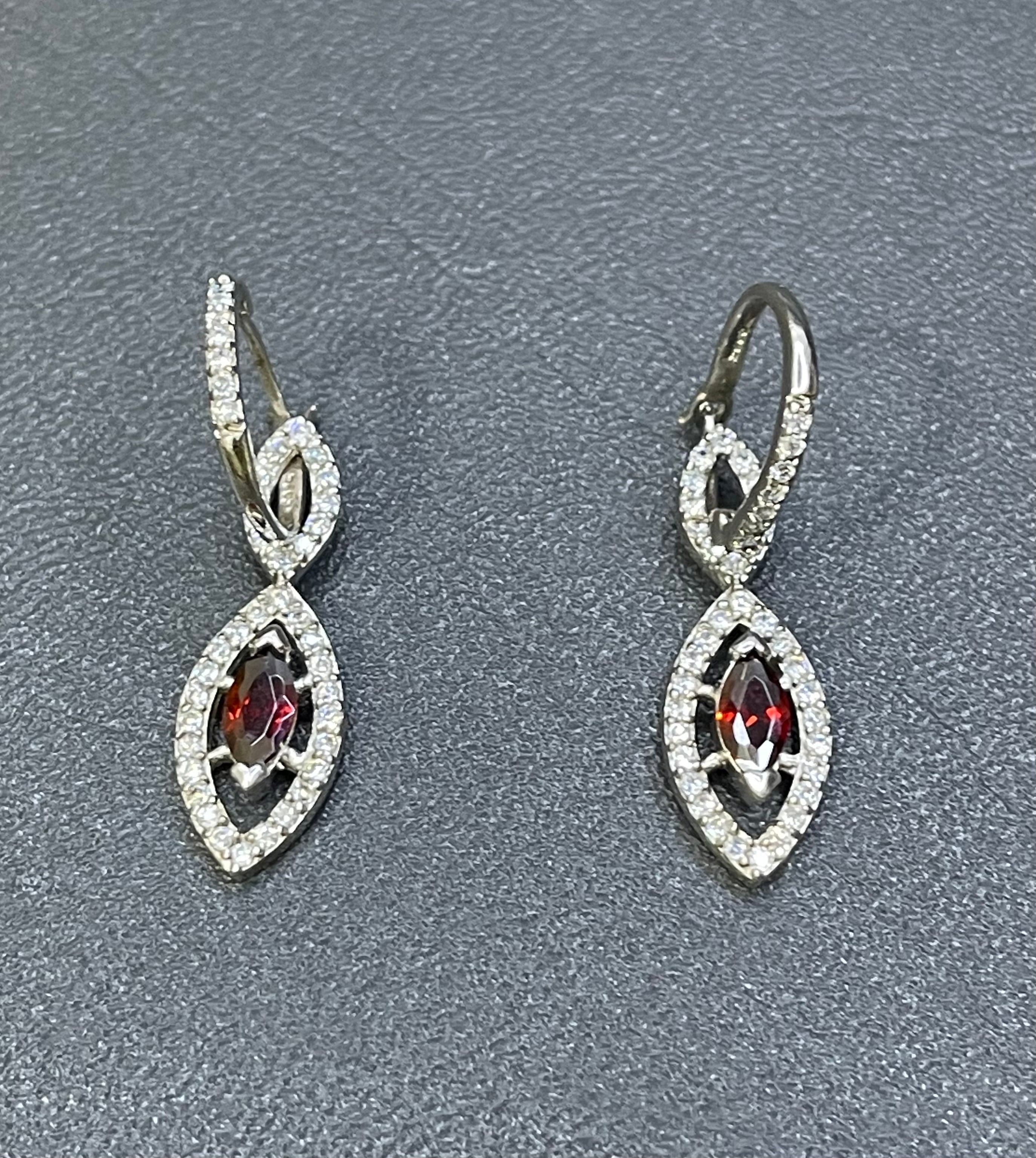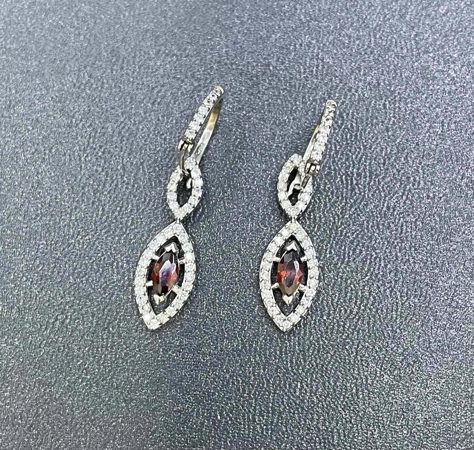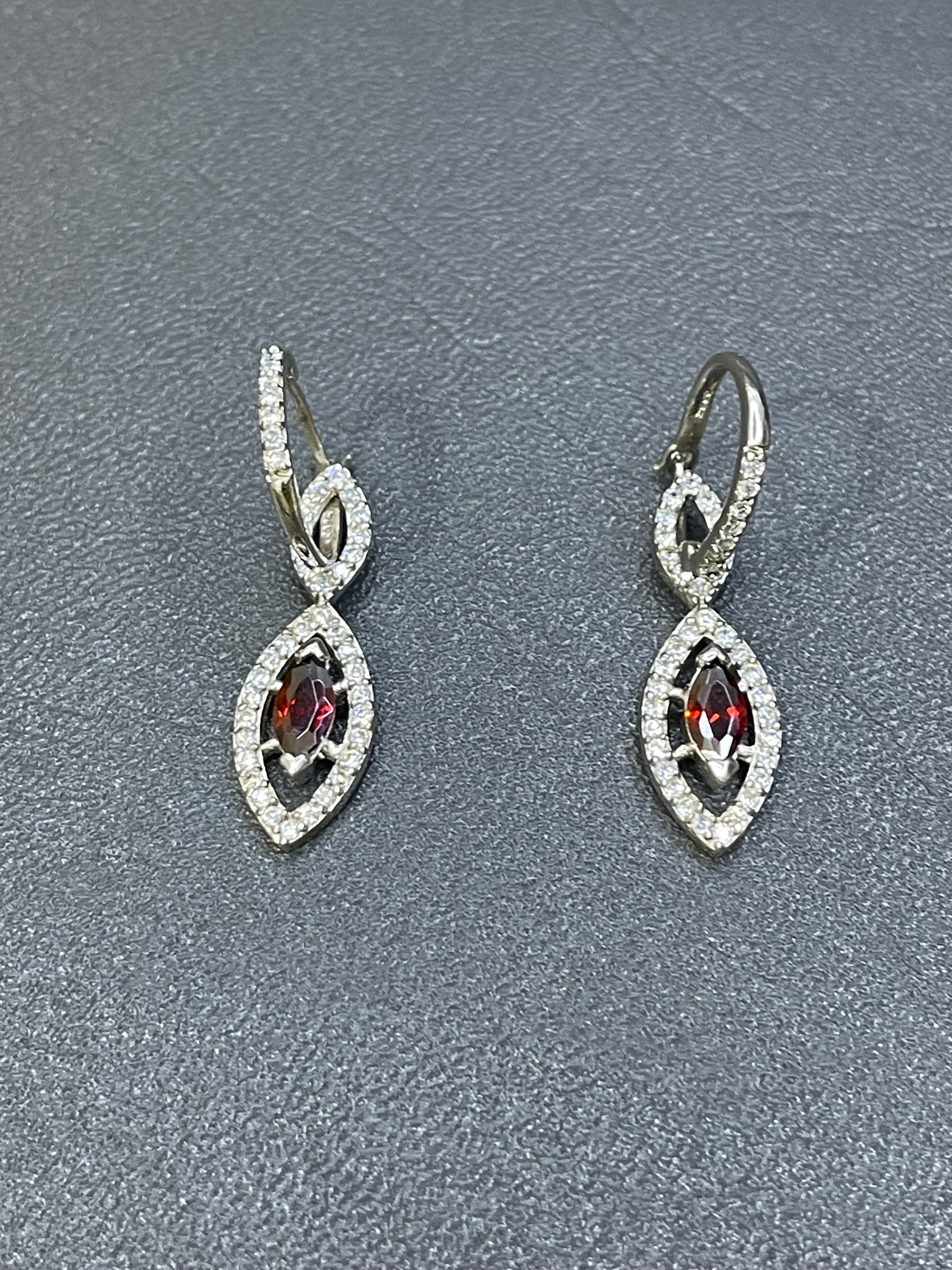 925 Silver Hoop Hanging Earrings with Garnet Color Stone & Zircon – Time N Treasure