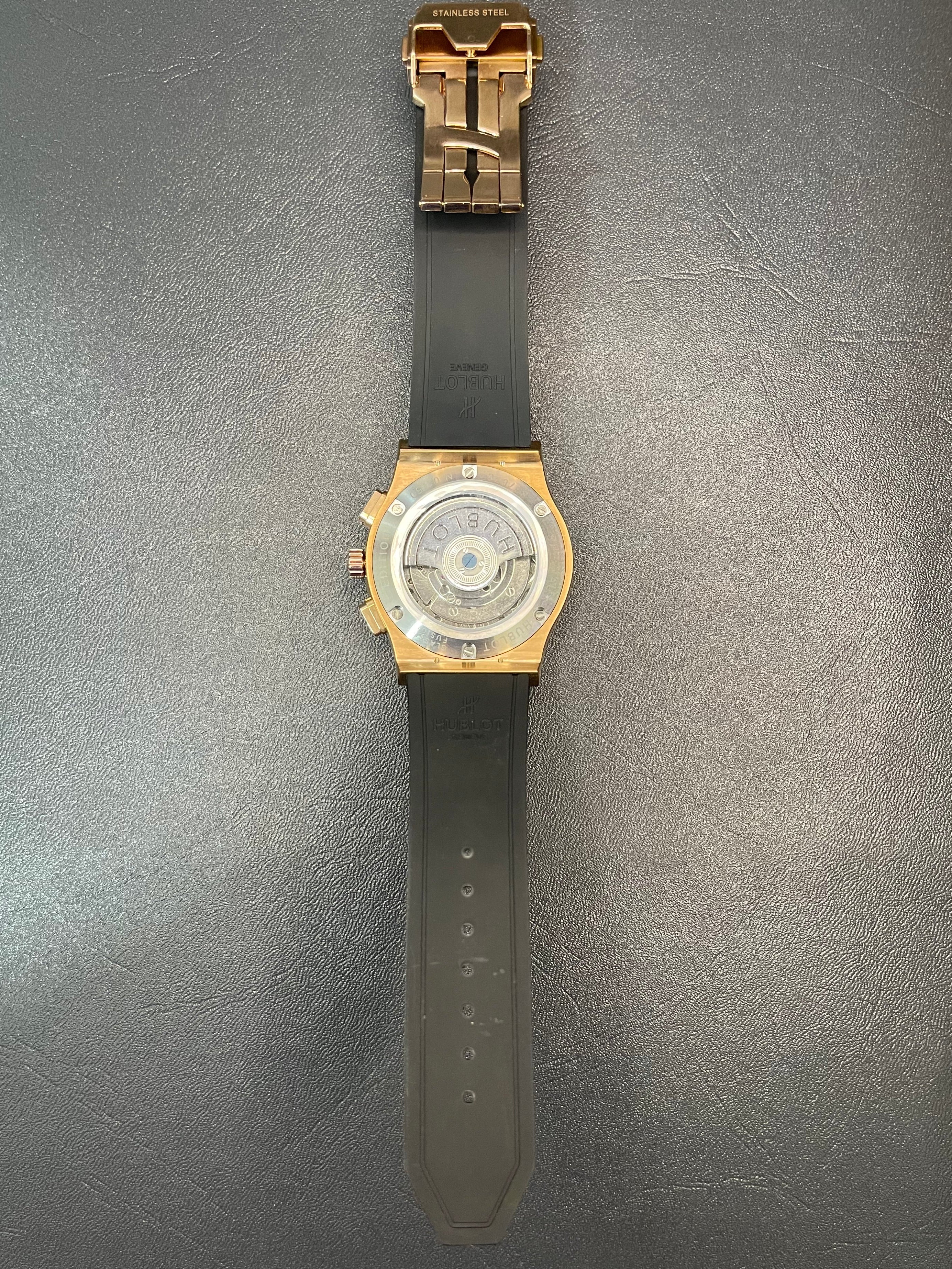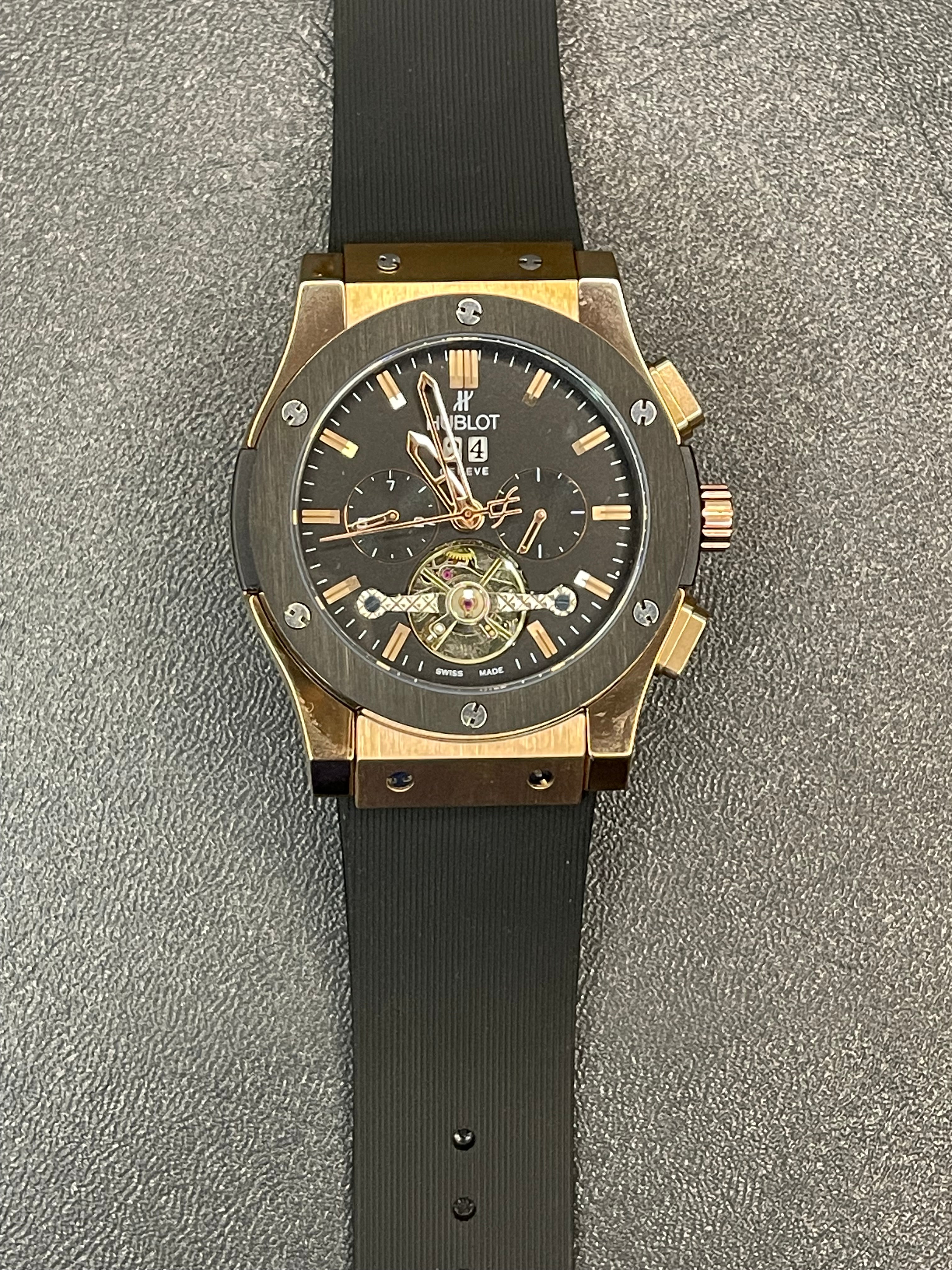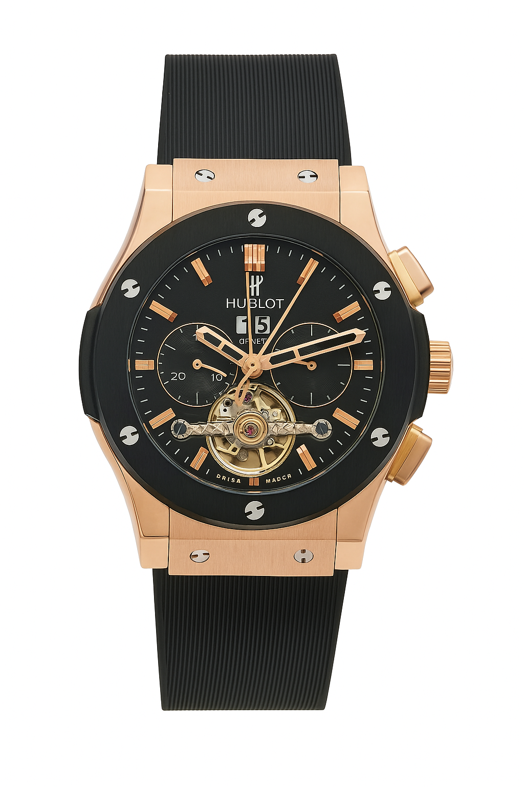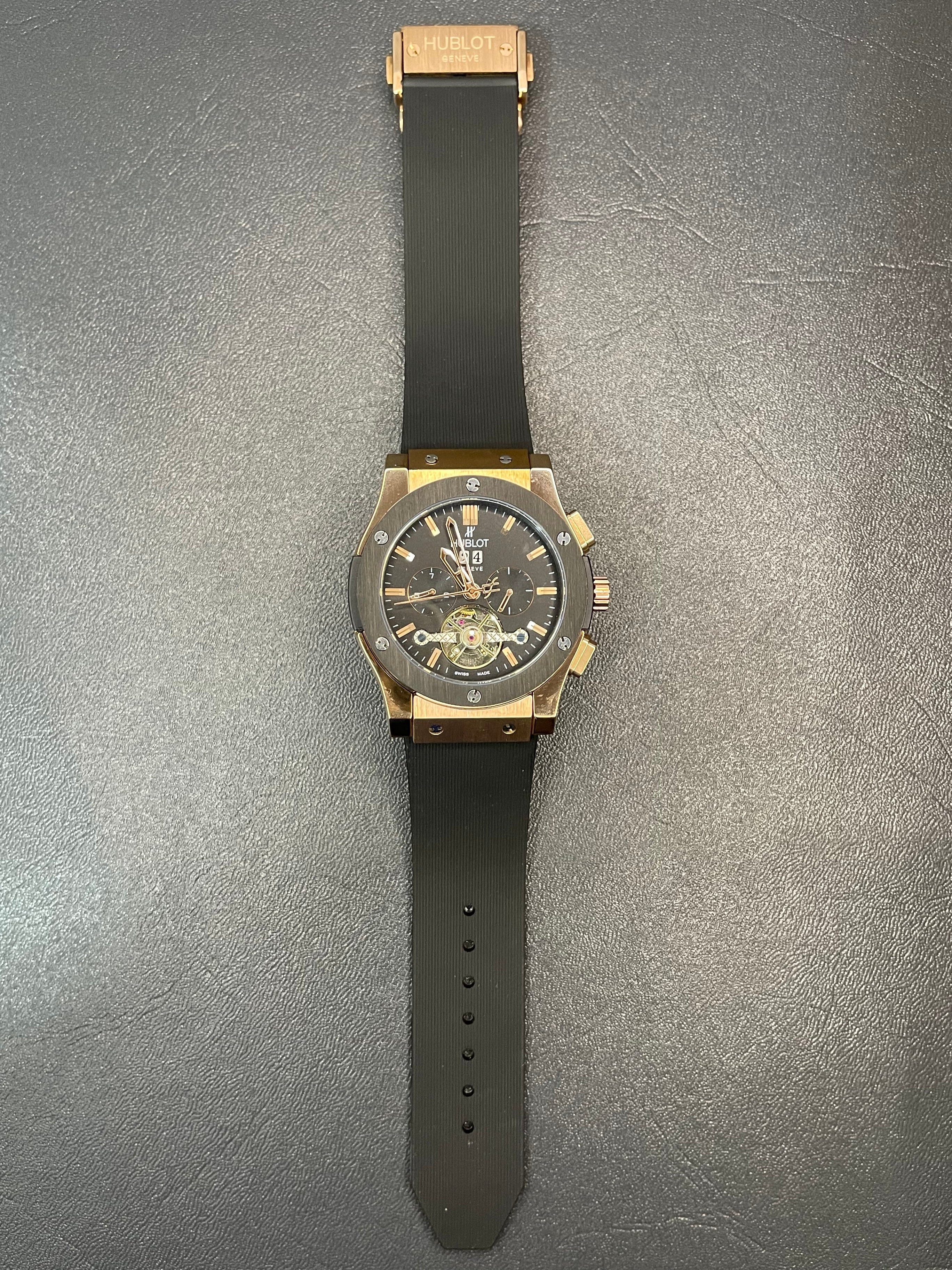 The Hublot Classic Fusion Rose Gold & Black combines bold elegance with modern sport luxury. Featuring a black dial, black case with rose gold accents, and a durable black rubber strap, this timepiece reflects Hublot’s signature “Art of Fusion.” Its clean chronograph design and refined craftsmanship make it a versatile watch for both casual and formal wear.