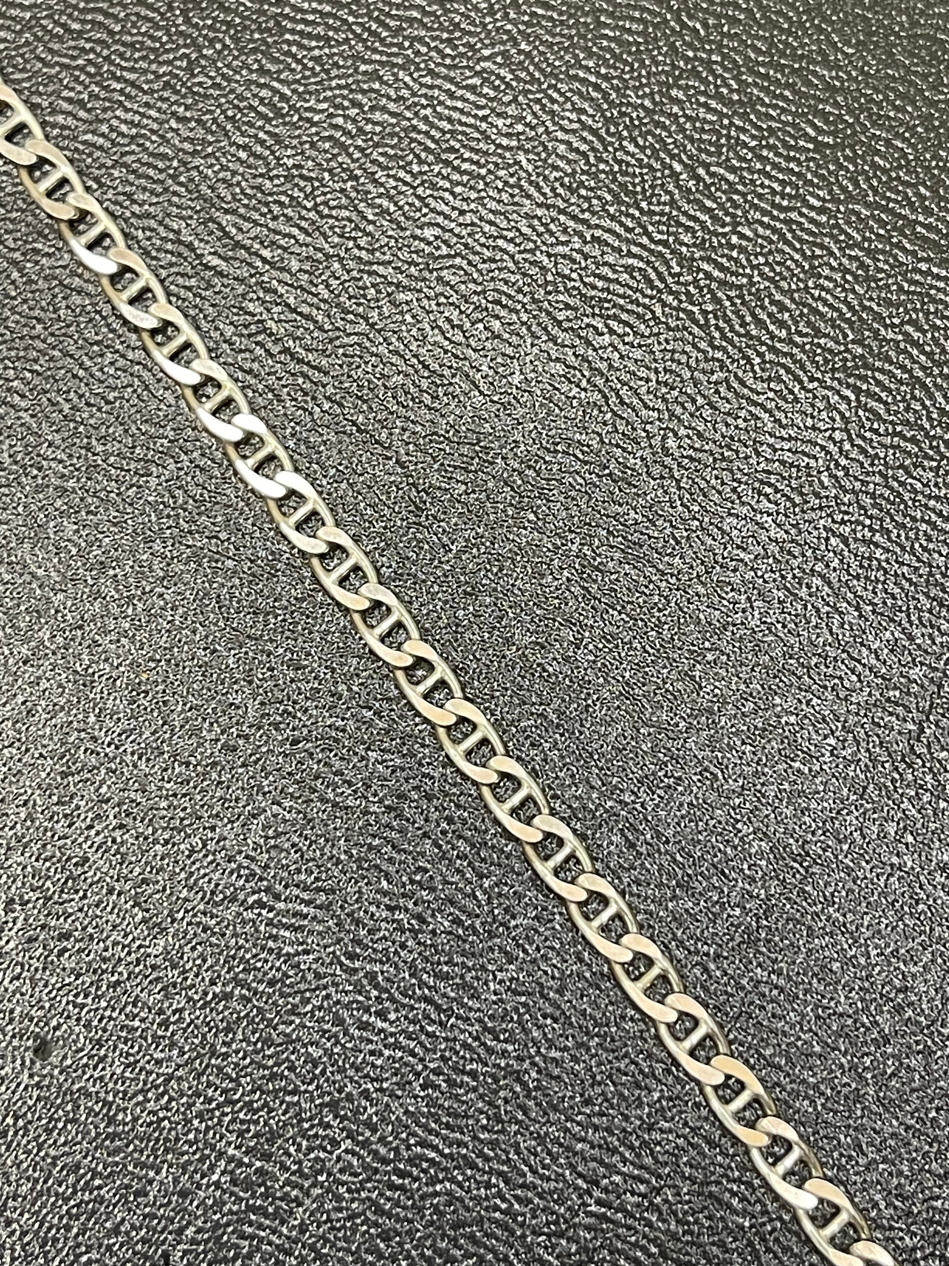 Add a touch of timeless elegance with this Mariner chain bracelet, crafted in genuine 925 sterling silver. Known for its iconic oval links with a central bar, the Mariner design combines strength, durability, and sophistication. A versatile bracelet that complements both casual and formal looks, making it an essential piece in every man’s jewelry collection.