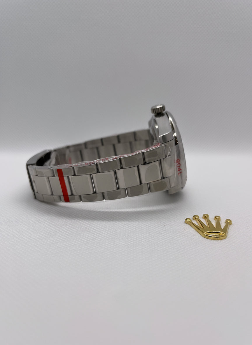 Experience timeless sophistication with the Oyster Perpetual 41 (2025), featuring a sleek stainless steel case and matching dial for a modern, monochrome elegance. Designed with precision and durability, this watch blends luxury styling with everyday wearability.