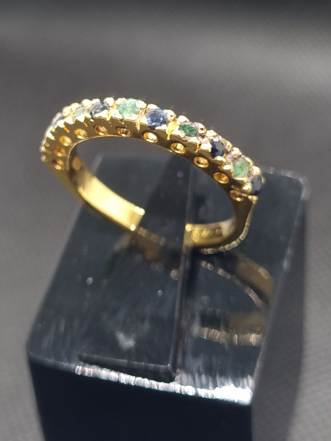 Add vibrant color and luxury to your jewelry collection with this stunning gold-plated ring, featuring eye-catching blue and green semi-precious stones. Expertly handcrafted by Time N Treasure, this unique piece blends elegance with a bold, modern twist.