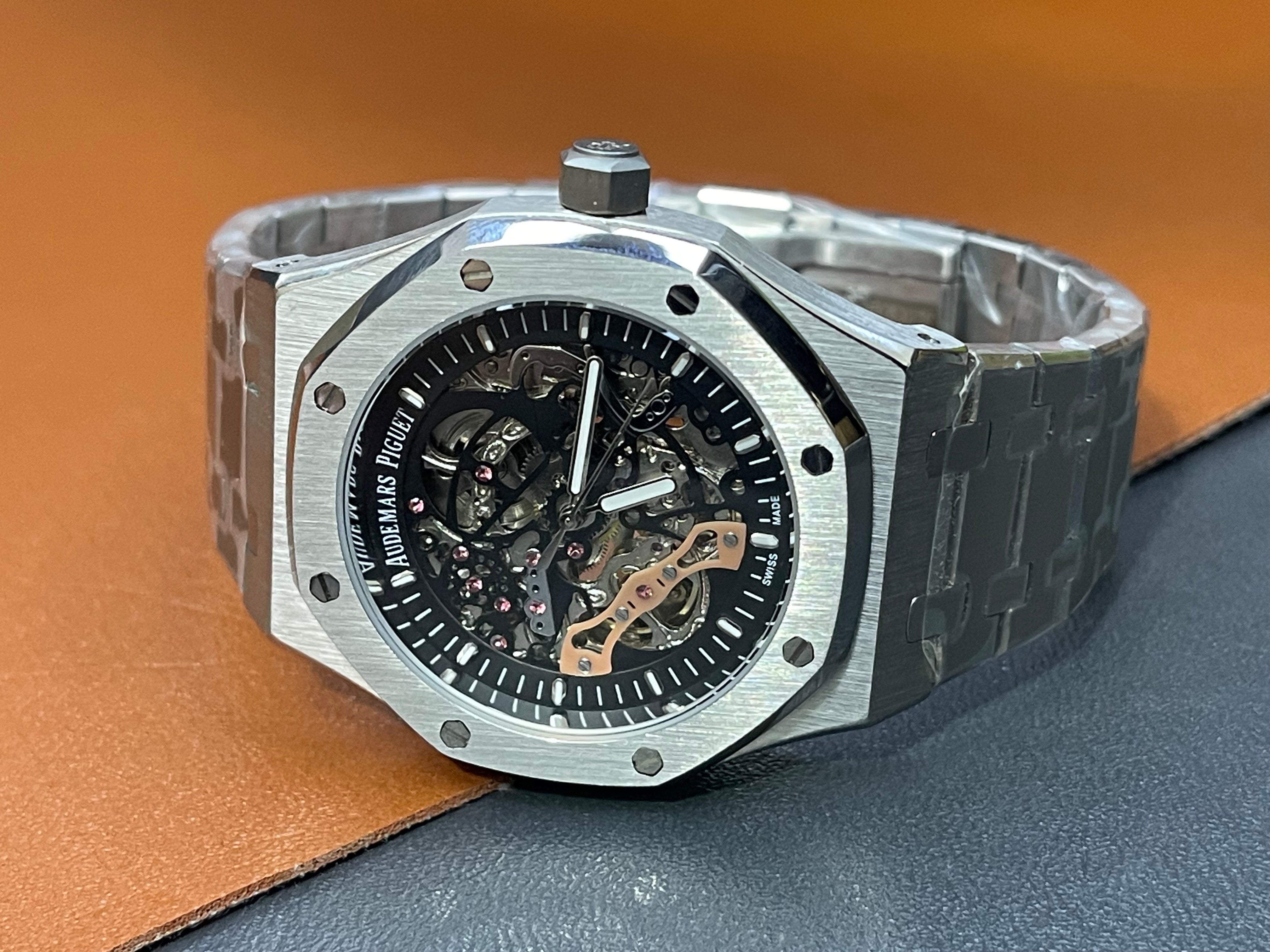 The signature octagonal bezel, integrated bracelet design, and exposed mechanics create a powerful statement on the wrist. Perfect for collectors who appreciate craftsmanship and modern design, this skeleton watch delivers both style and horological depth.