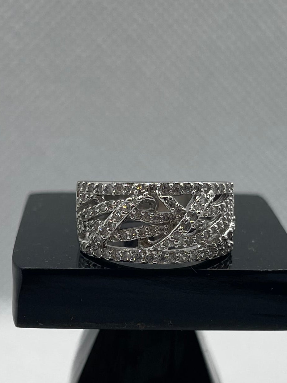 925 Silver Band with Crisscross Zircon Design – Time N Treasure