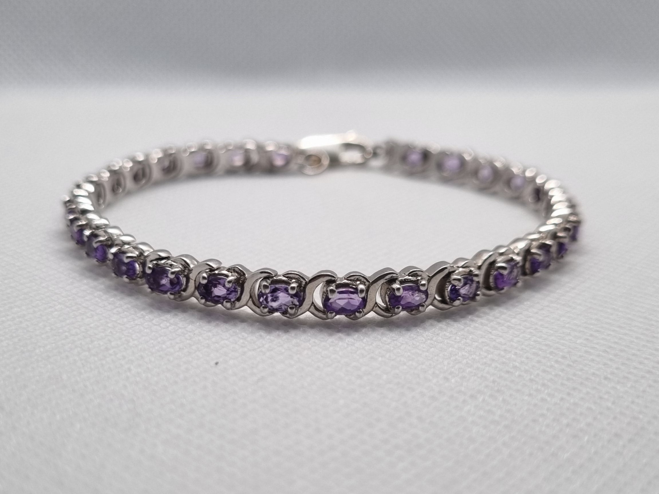 Silver Bracelet with Amethyst Color Stone – Time N Treasure