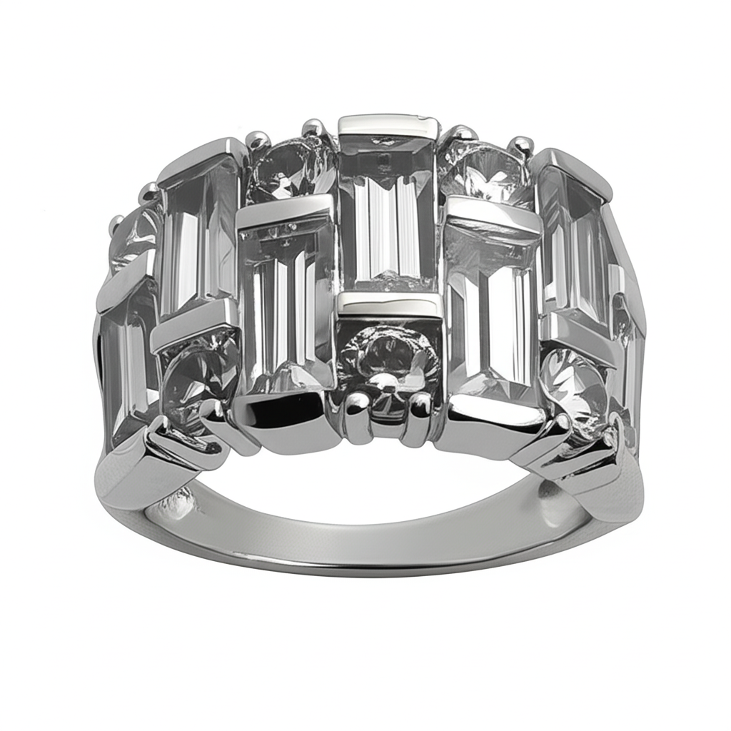 Sleek geometry meets classic sparkle in this 925 sterling silver ring, featuring bold rectangular bracket elements framing a brilliant round-cut zircon stone. Expertly handcrafted by Time N Treasure, this ring is a modern masterpiece with clean lines and timeless shine.