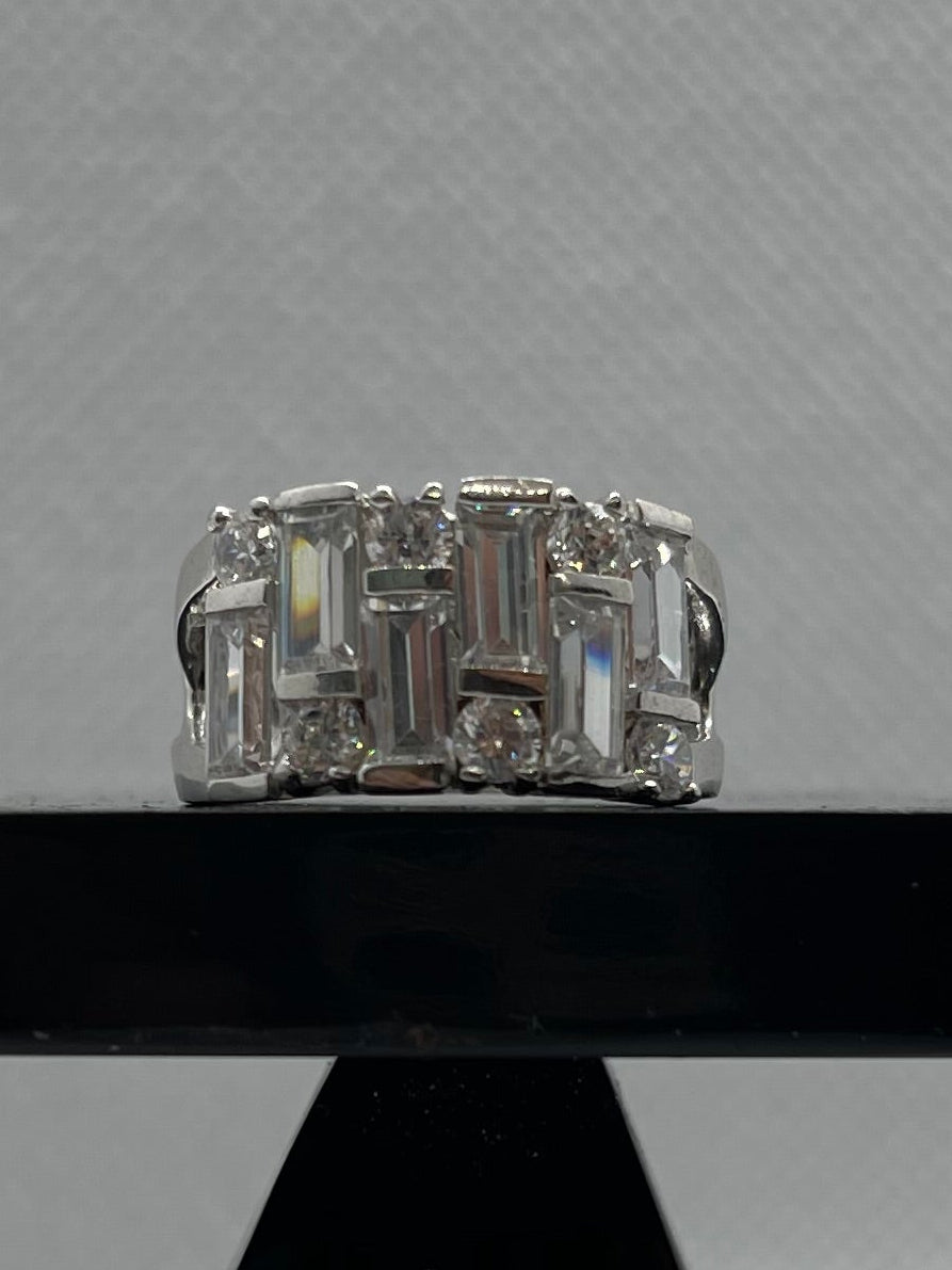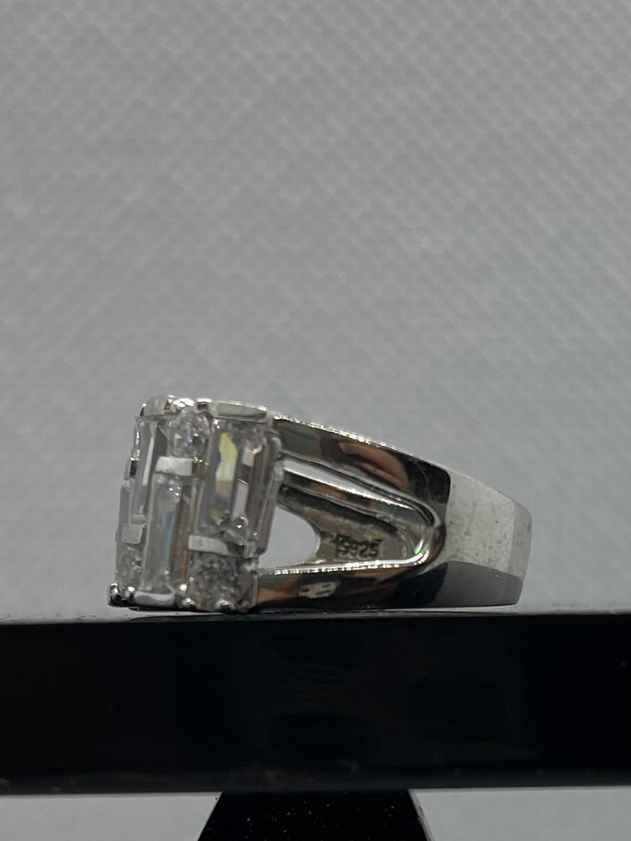 925 Silver Ring with Rectangular Brackets and Round Zircon – Time N Treasure