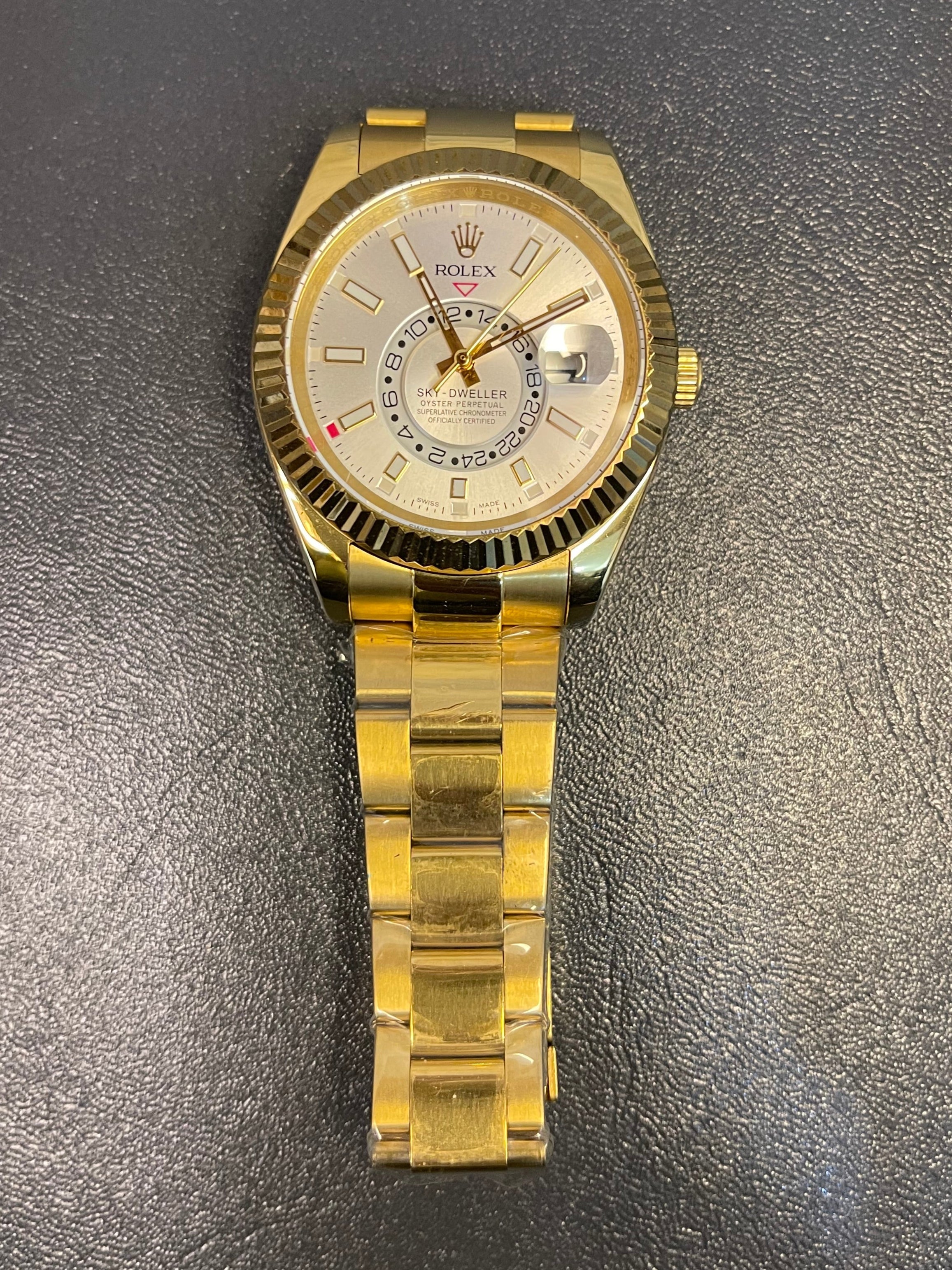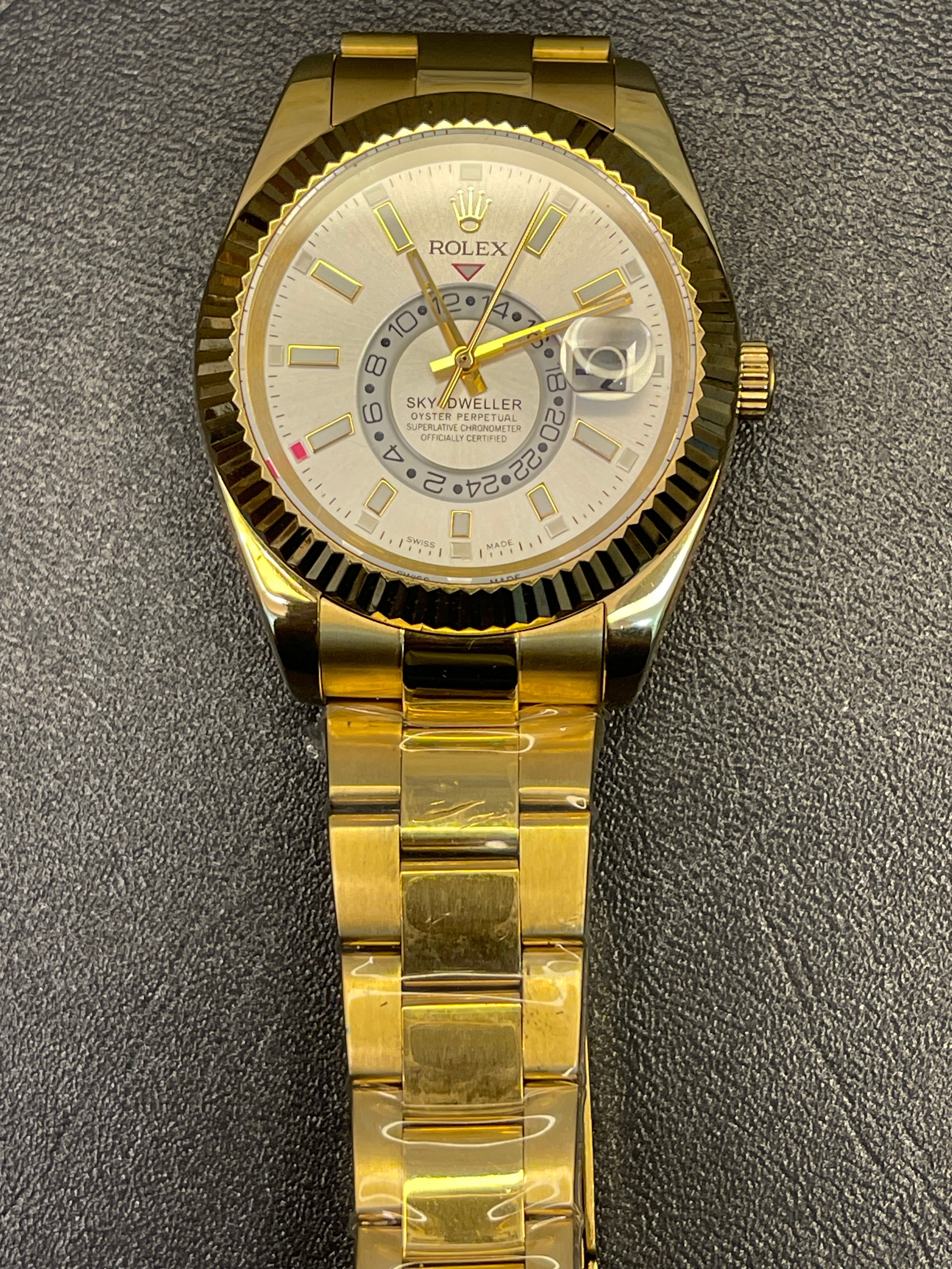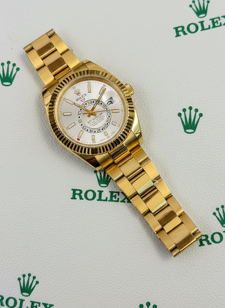 Sky-Dweller Style Watch – 42mm White Dial with 18K Yellow Gold Color | Dual Time Annual Calendar Watch in Pakistan