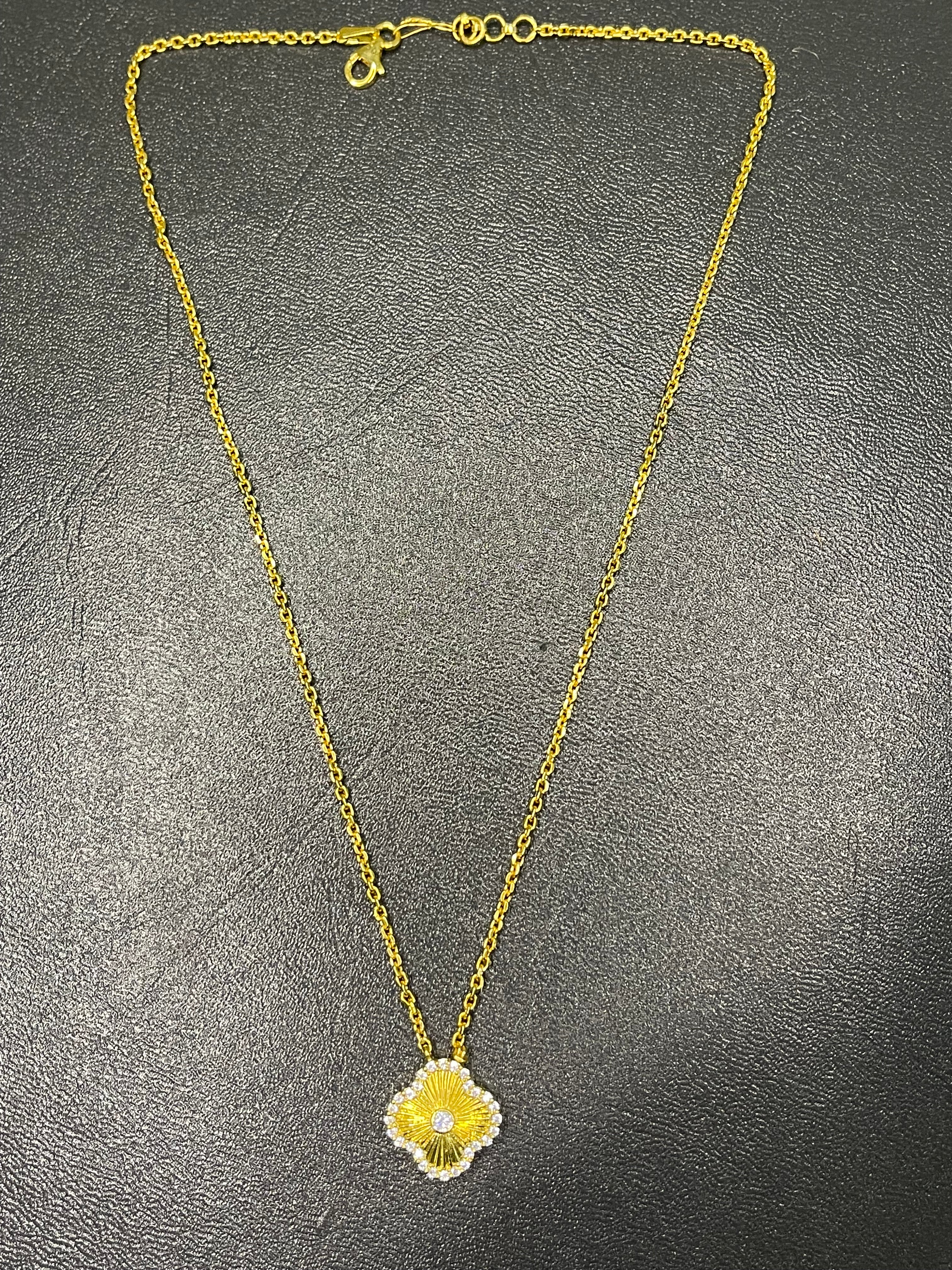 Add timeless elegance to your collection with this Van Cleef inspired locket, beautifully crafted in gold-plated 925 silver and adorned with a sparkling zircon stone. A perfect blend of luxury and sophistication, this locket is ideal for both everyday wear and special occasions.