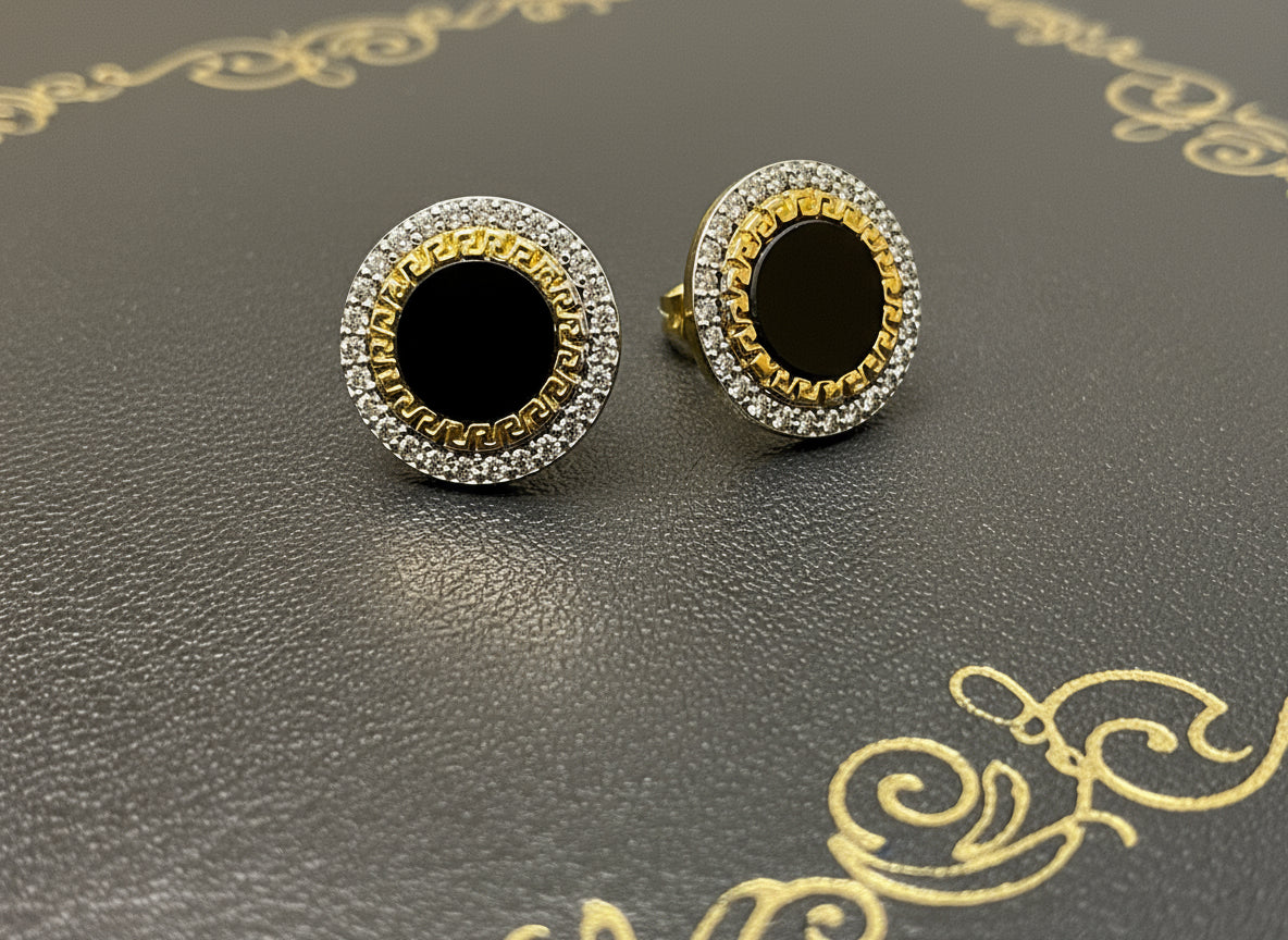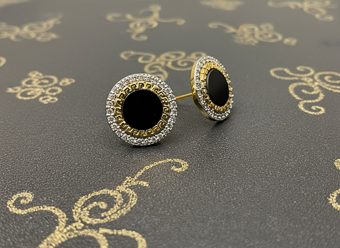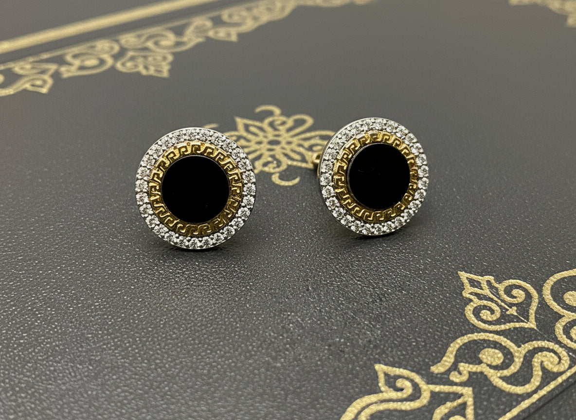Bold yet timeless, these Versace inspired tops feature a striking black stone centerpiece set in 925 silver with premium gold plating. Designed with a classic round Versace-style frame, they add effortless luxury to both casual and formal looks.